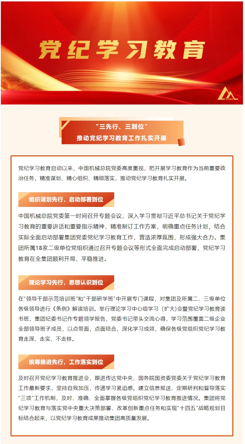中國(guó)機(jī)械總院:三先行 三到位 推動(dòng)黨紀(jì)學(xué)習(xí)教育工作扎實(shí)開(kāi)展